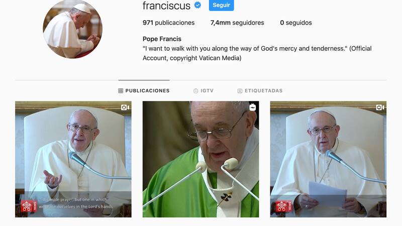 El Papa llegó a la red social para compartir fotografías Instagram en marzo de 2016 con el nombre de @Franciscus, lo que afianzó su presencia en las redes sociales con más de 16.000 seguidores en los primeros 15 minutos. Actualmente la cuenta oficial del Papa en Instagram es seguida por 7,4 millones de personas.