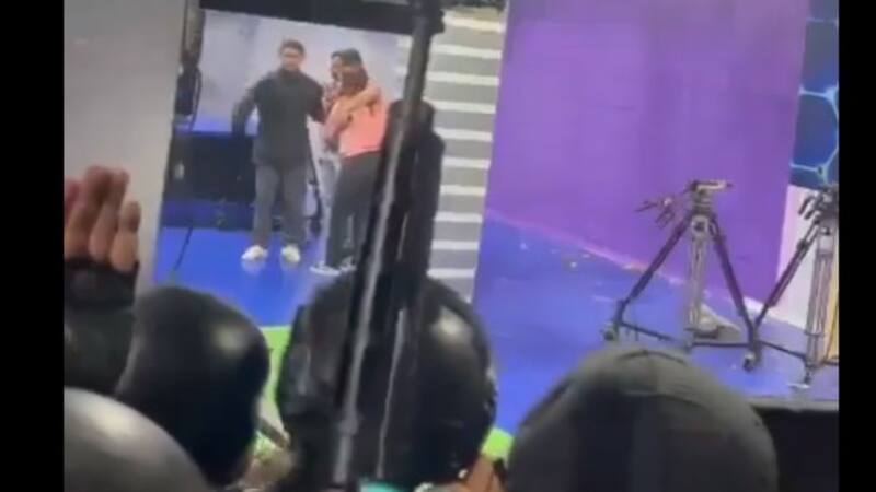 En el registro audiovisual se muestra a la policía intentando dialogar con uno de los individuos, que intentaba escudarse detrás de trabajadores de la emisora televisiva, previo a su captura.