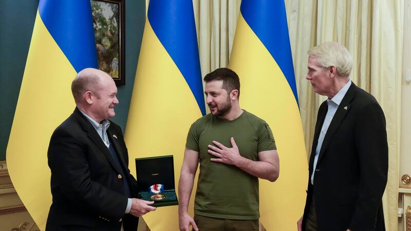 Los senadores Chris Coons y Rob Portman visitaron Kiev la semana pasada y entregaron la medalla en persona a Zelenski. El Centro de la Constitución anunció el premio en agosto y dijo que mandatario ucraniano fue seleccionado “por su heroica defensa de la libertad frente a la tiranía rusa” durante la guerra en Ucrania.