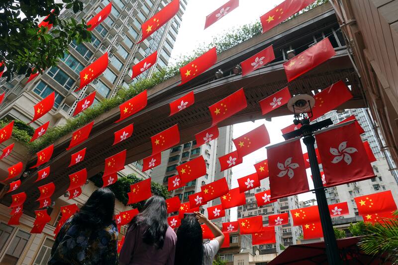 Las calles y los espacios públicos de Hong Kong se adornaron con banderas nacionales chinas, arreglos florales y pancartas con mensajes patrióticos. Pero algunos políticos de la oposición dicen que las festividades manifiestas desmienten una sensación de aprensión que muchos residentes albergan sobre su futuro.