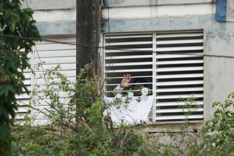 Tres banderas de Cuba fueron desplegadas en el domicilio de García por grupos castristas para cubrir las escasas ventanas del hogar, detrás de las cuales el dramaturgo logró colgar una tela blanca con el mensaje en letras rojas: “Mi casa está bloqueada”.