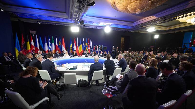 “Ucrania no sólo se merece la integración en la UE, sino también las garantías que da la OTAN”, ha defendido, en un foro de ayuda al que han acudido en persona representantes de más de una decena de países europeos, entre ellos el presidente del Gobierno, Pedro Sánchez, y los responsables de la Comisión y el Consejo Europeos, así como el primer ministro de Canadá, Justin Trudeau.