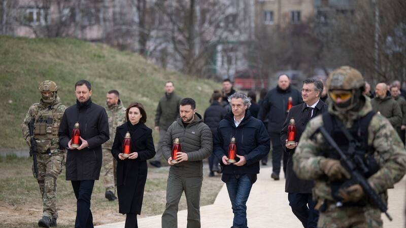 “Cuando Bucha fue desocupada, la atroz verdad de lo que estaba ocurriendo en los territorios temporalmente ocupados se reveló al mundo”, dijo Zelensky, en un mensaje en sus redes sociales que acompañó con un video de varios líderes internacionales visitando la zona.