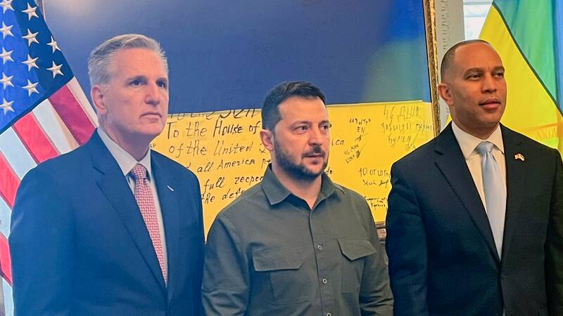 Zelensky, vestido con uniforme verde oliva y manga larga, llegó al Capitolio con un mensaje firme en sus conversaciones a puertas cerradas con líderes republicanos y demócratas. Los ucranianos tienen un plan de guerra sólido y “están ganando”, aseguró a los legisladores, según declaraciones de éstos.
