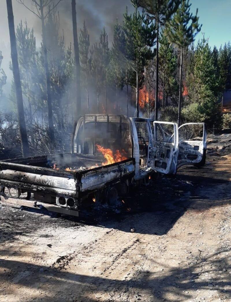 “No respetaron nada. Quemaron vehículos, camionetas particulares, camiones particulares de Arauco, máquinas de faenas forestales; alrededor de 25 a 30 maquinarias quemadas en total”, relató uno de los conductores.