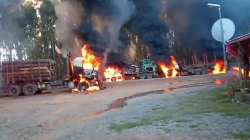 Con 17 camiones, dos camionetas y cuatro máquinas forestales destruidas por las llamas, culminaron una serie de ataques coordinados este jueves en sectores rurales de la comuna de Lumaco, en la provincia de Malleco.