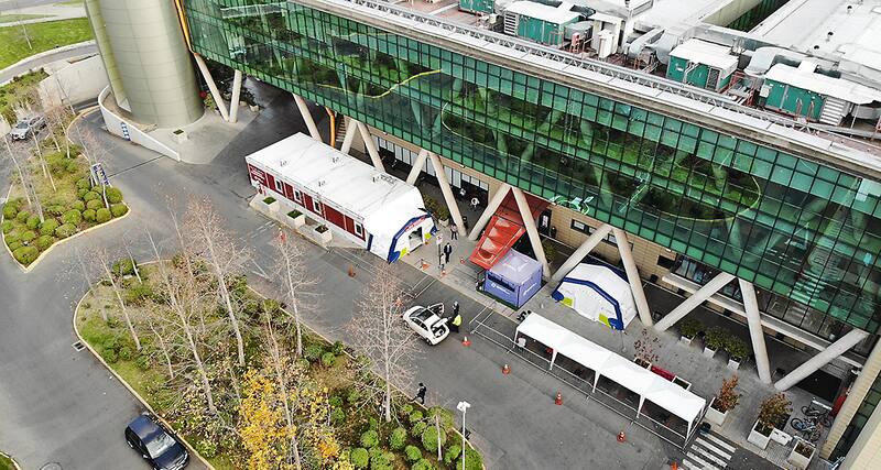 Otros recintos también han aumentado su dotación. Como la Clínica Alemana, que entre el 15 y el 28 de mayo incrementó de 18 a 42 sus camas con ventilación. Lo mismo ocurre con las clínicas Santa María (que sacó extensiones con toldos hacia calle Bellavista para dar más espacio a la zona de tránsito en Urgencia), Dávila y Vespucio, las tres de Empresas Banmédica. Entre todas aumentaron de 50 a 102 las camas críticas.