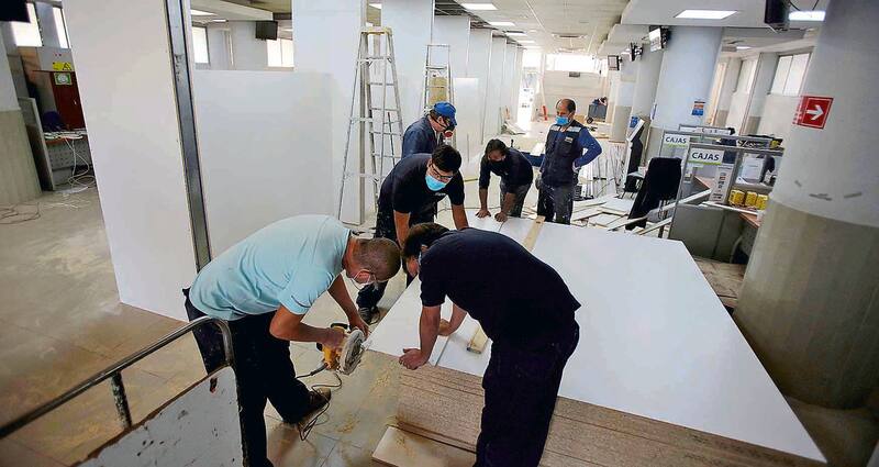 Algo similar ocurre en el Hospital Clínico de la U. de Chile (J. J. Aguirre), donde su hall normalmente está lleno de pacientes y familiares en espera, pero ahora está saturado de maestros de la construcción, que trabajan en reacondicionar este lugar como una nueva sala UCI: tendrá 25 camas críticas en 15 días más.