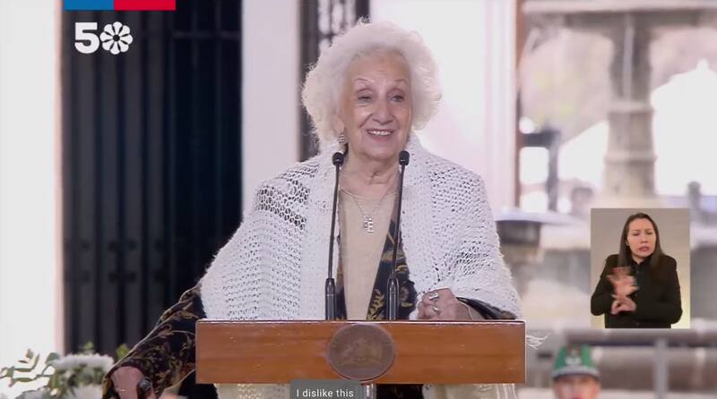 También se refirió al ambiente que se vive: “Ambos presidentes, Michelle Bachelet y Gabriel Boric, se advierte una atmósfera tensa, un clima muy tenso donde hay palabras que uno esperaría no escuchar en estos tiempos, y que hemos tenido que, la verdad, sufrir oyéndolas, porque ya creíamos que todos estábamos de acuerdo con que democracia siempre y nunca violación a los derechos humanos.