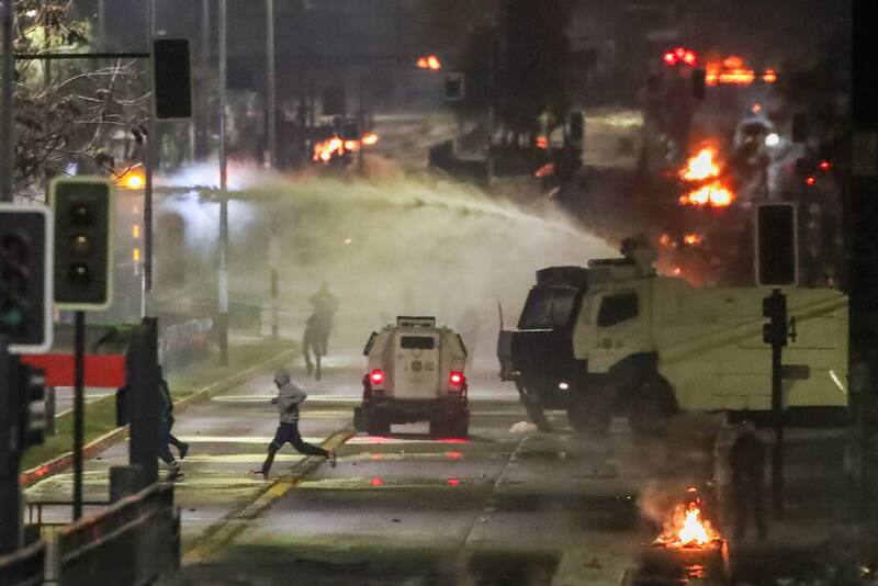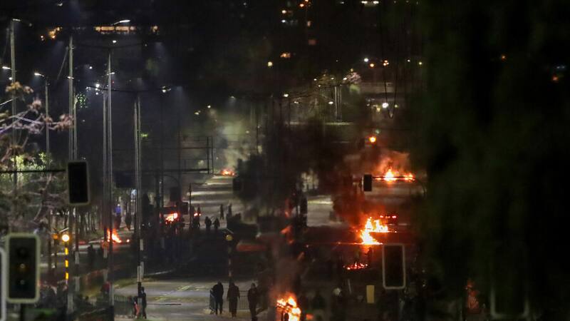 Los disturbios comenzaron entrando la noche, con barricadas en Villa Francia, en Estación Central; como también en Puente Alto, Cerro Navia y Pedro Aguirre Cerda.