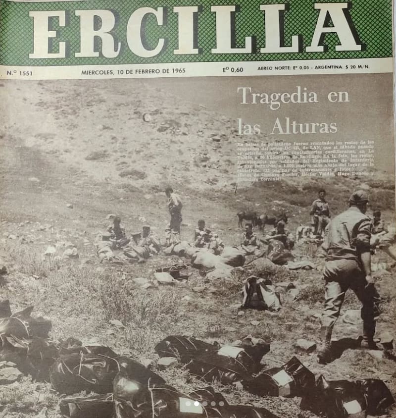 La revisa Ercilla tituló el accidente como una “Tragedia en las Alturas”, detallando que las únicas piezas del avión que permanecieron íntegras fueron tres de sus motores, que rodaron hasta el estero Colina, “al fondo de la quebrada”.