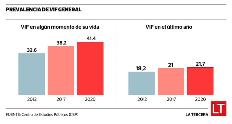 Entre los resultados, se desprende que las mujeres tienen un mayor riesgo de ser víctimas de delitos en espacios privados y al interior del hogar. En 2020, un 21,7% de las mujeres declaró haber sufrido violencia intrafamiliar (VIF). Al menos uno de los victimarios corresponde a su pareja o expareja, en el 74,5% de los casos. La violencia de pareja sería la gran deuda con la mujer, de acuerdo a las autoras.