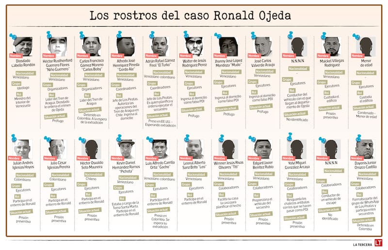 El que estaba en calzoncillos ese día era el exteniente venezolano Ronald Ojeda, quien se encontraba refugiado en Chile desde 2017 por su oposición al régimen chavista y la dictadura de Nicolás Maduro. Las personas que lo acompañaban en el ascensor eran de la facción del Tren de Aragua llamada “Los Piratas de Aragua”. Ese día, tras salir del edificio, dos de las personas que se encontraban vigilando horas antes el edificio grabaron un video de Ojeda y los falsos PDI. El encargo estaba casi completo, solo faltaba acabar con su vida.