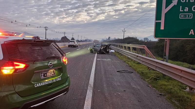Un grave accidente de tránsito ocurrió en Graneros, región de O’Higgins, alrededor de las 6.30 de la mañana de este martes. Un conductor de nacionalidad chilena chocó por la parte trasera del vehículo a otro, lo que le ocasionó la muerte al ocupante del segundo automóvil. Debido al hecho, se habilitó el tránsito por solo una de las vías.