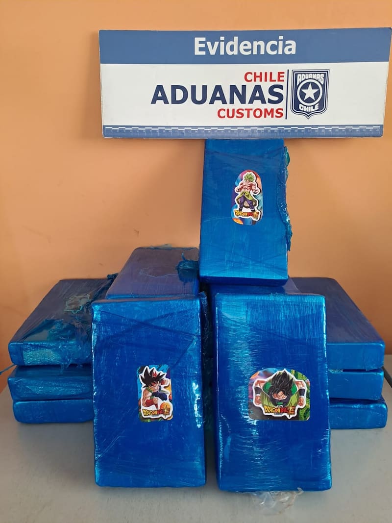 Aduana de Antofagasta descubre a pasajera de bus con 17 ladrillos de cocaína marcados con logos de Dragon Ball Super