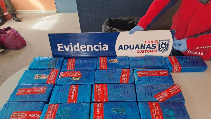 Un grupo de fiscalizadores de la Aduana de Antofagasta incautó 17 paquetes de cocaína a una mujer que viajaba a bordo de un bus que cubría el trayecto de Calama a Santiago.