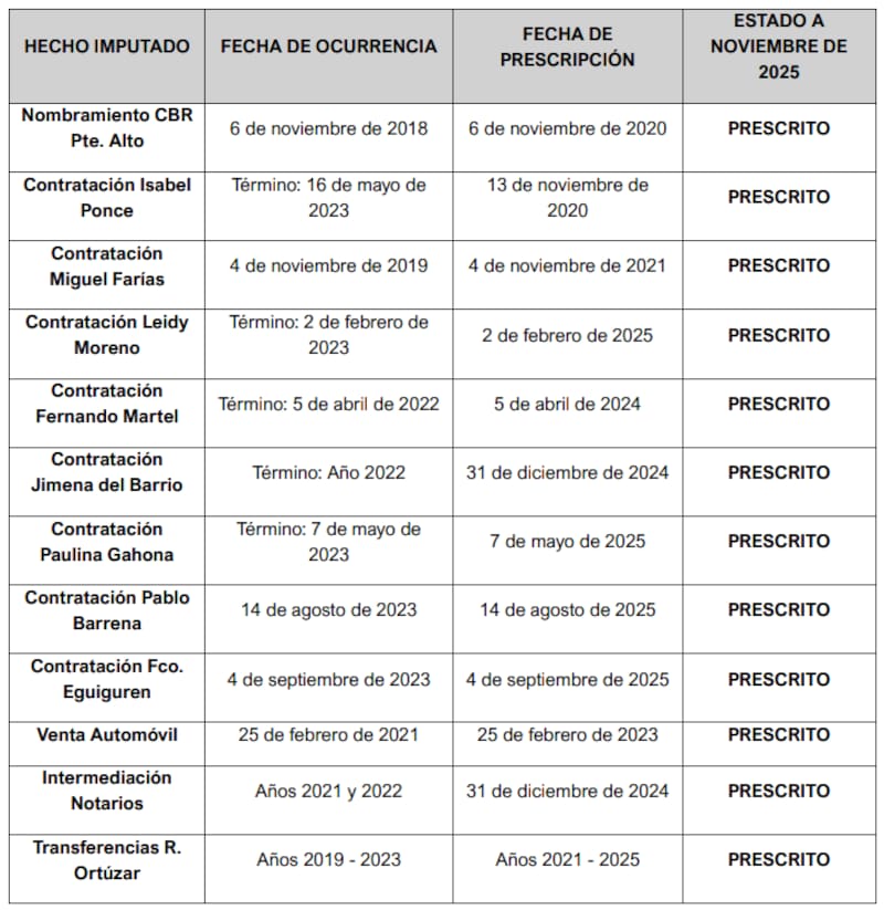 Por lo demás, recalcan, los hechos por los que se le pretendería sancionar estarían prescritos. Y al no estar acreditado que sean delitos, no procedería la sanción administrativa.