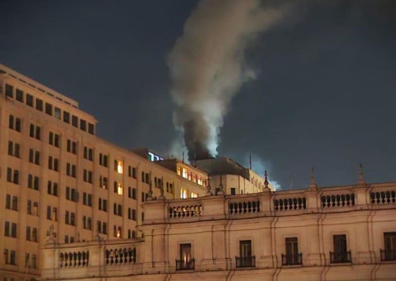 Tras esto, se dio una alarma de incendio que, de acuerdo con el Cuerpo de Bomberos de Santiago, motivó el despliegue de 120 voluntarios de 10 compañías para combatir las llamas, que se propagaron rápidamente hacia los pisos superiores del edificio y generaron una densa nube de humo que se pudo apreciar a gran distancia.