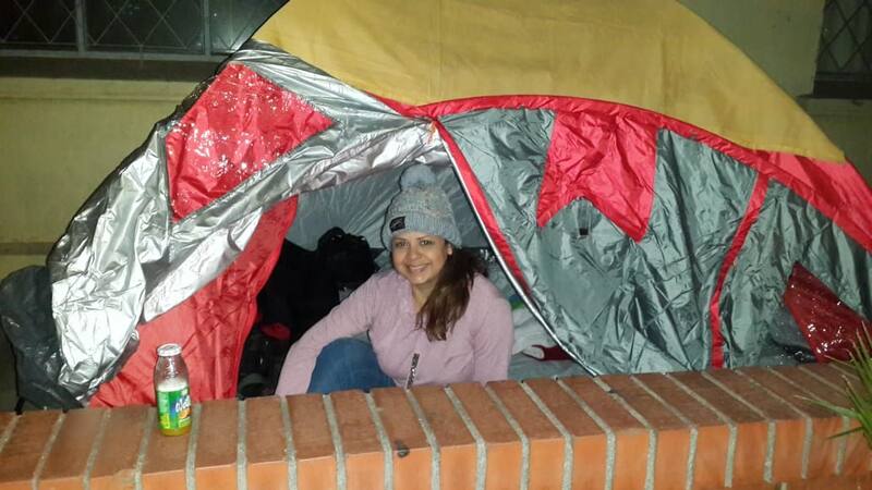 Fue entre abril y mayo cuando Aura quedó literalmente en la calle. Entonces sí escasearon los recursos. Se consiguió unas mantas, una carpa, algunas bolsas y partió a instalarse afuera de la empajada de Venezuela, en calle Bustos, comuna de Providencia. Junto a decenas de compatriotas suyos.