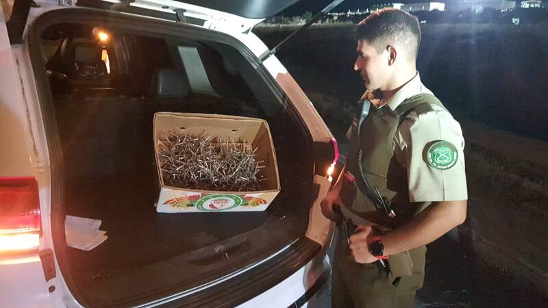 Los delincuentes quemaron dos vehículos para bloquear calles y evitar ser perseguidos. Además, dejaron un tercer auto abandonado en Camino Lo Boza con "miguelitos" en su interior.