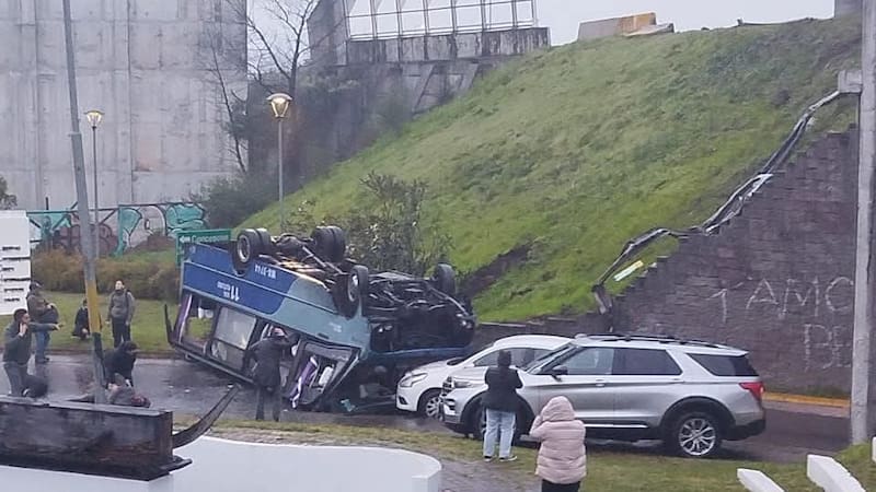 Esta tarde un microbús de pasajeros se desbarrancó desde un paso sobre nivel en la ruta que une Chiguayante con Concepción, en la Región del Biobío, dejando un saldo preliminar de al menos tres fallecidos y una decena de heridos.