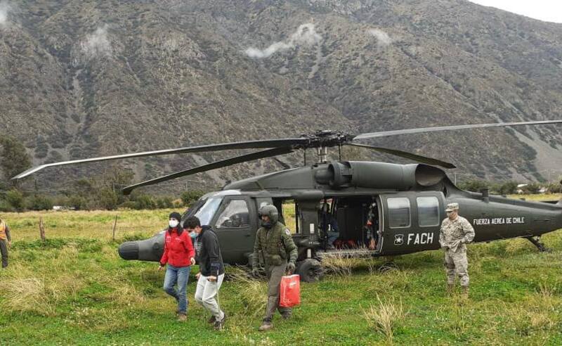 Alrededor de las 9 de la mañana se subieron a un helicóptero junto a miembros de la Fuerza Aérea de Chile (Fach) y el Ejército y sobrevolaron la zona para hacer un reconocimiento general y después recorrieron las zonas afectadas por aludes, enfocados en aquellas que permanecían incomunicadas.