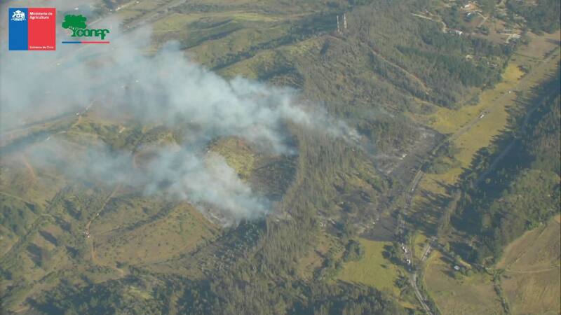 Se encuentran trabajando en la zona 13 brigadas, un técnico, un puesto de mando, un skidder y cinco helicópteros de la Corporación Nacional Forestal (Conaf).