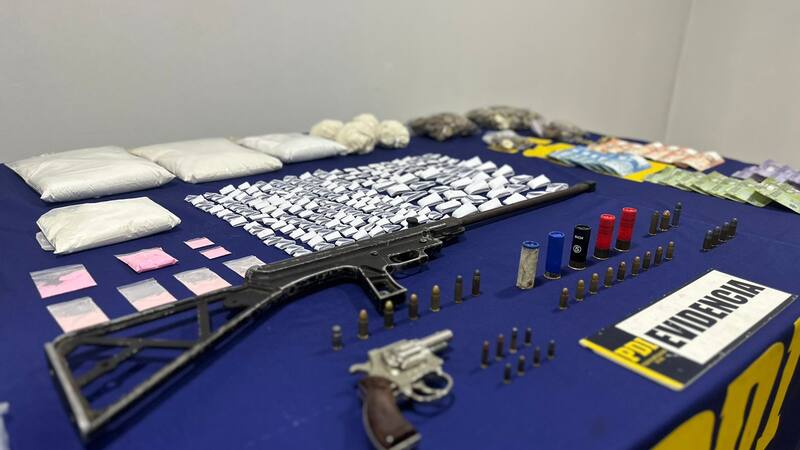 Además, se encontraron otras especies, como un revólver sin marca, mod. 343, made in Italy, municiones, cámaras de seguridad, dinero en efectivo y diversos elementos de dosificación.