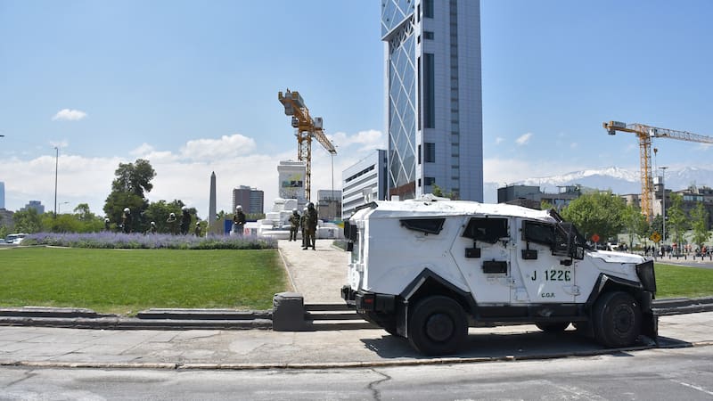 Durante la tarde de este miércoles, un carabinero que estaba siendo apedreado en las cercanías de Plaza Italia, en el marco de manifestaciones por el cuarto aniversario del estallido social, hizo uso de su arma de fuego realizando disparos al aire.