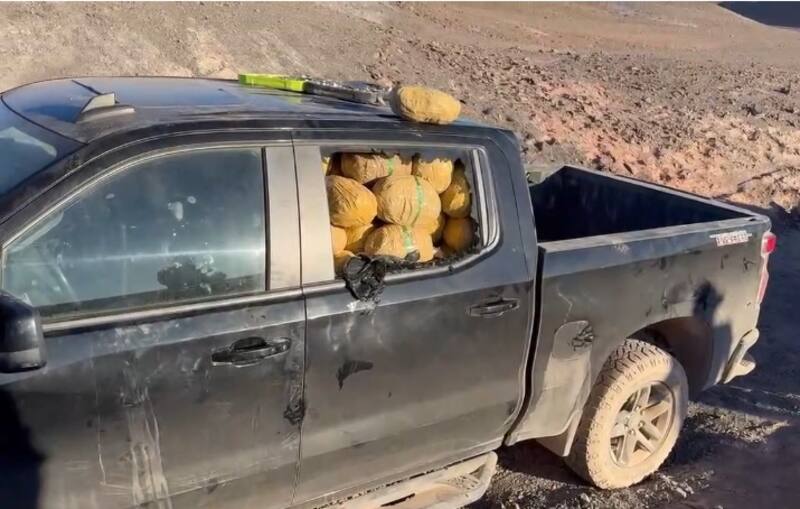 En el marco de patrullajes preventivos se dio con una camioneta que había sido robada en la Región de la Araucania y mantenía patentes falsas. Contenía 510 kilos de marihuana y 500 municiones calibre 5.56.
