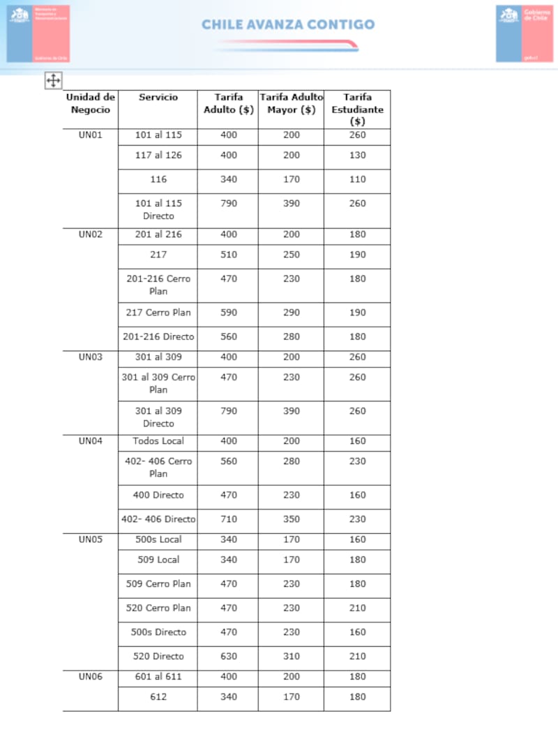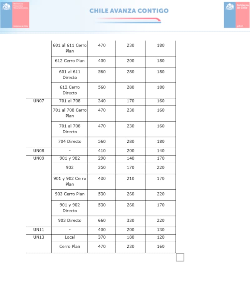 El Ministerio de Transportes y Telecomunicaciones informó un alza de $10 en las tarifas de adulto de los buses del transporte público en el sistema de las comunas del Gran Valparaíso (Villa Alemana, Quilpué, Concón, Viña del Mar y Valparaíso) y de Quintero y Puchuncaví.