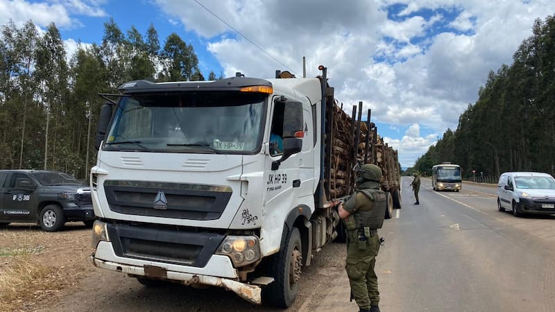 Este viernes, Carabineros logró la detención de un hombre de 49 años mientras transportaba en un camión una carga de madera que había sido sustraída minutos antes desde un predio en Angol, Región de La Araucanía.
