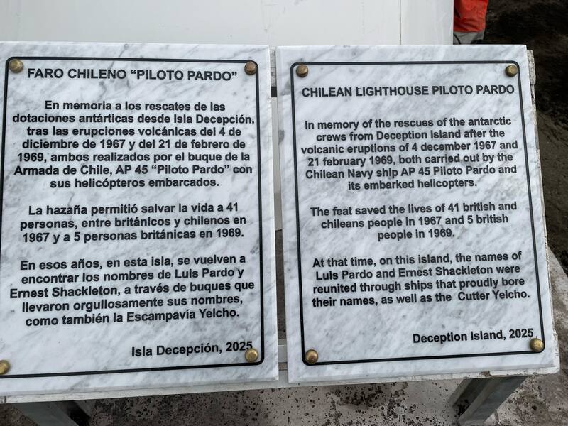 El 21 de marzo, a través del sistema de comunicación interna de la embarcación, el comandante del Marinero Fuentealba, capitán de fragata José Sandino De Ruyt, felicitó a la dotación de la nave involucrada en la construcción del faro Piloto Pardo, una nueva atalaya en el territorio chileno antártico, que fue emplazada en el peñón sur de la remota Isla Decepción, en la zona meridional del canal Brannfield, en las Islas Shetland.