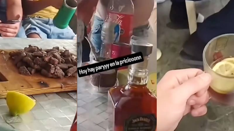 Las imágenes, grabadas por los propios internos y difundidas en redes sociales, muestran a un grupo de hombres sentados alrededor de una mesa con una botella de whisky, latas de cervezas y envases de bebidas, mientras manipulan teléfonos celulares y conversan en un ambiente distendido.