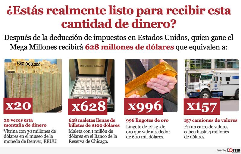 Ganar el mayor premios de lotería del mundo implica el pago de impuestos en Estados Unidos, pero el acumulado es tan grande, que aún después de las deducciones de ley la suma a recibir es inmensa. Quien gane el Mega Millones que está en juego a través de theLotter obtendría un aproximado de $460 mil millones (US$ 628 millones) para gastarlos como quiera y es por esto que este portal es uno de los más visitados en Chile por estos días, pues con la cantidad neta de dinero disponible el afortunado y su familia tendrán su situación económica resuelta por varias generaciones.