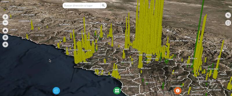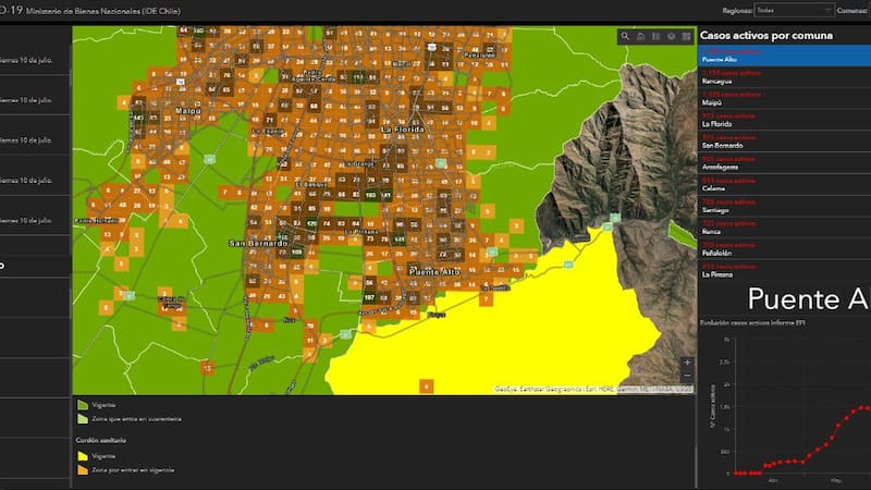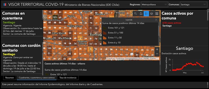 Desde el viernes pasado y con el objetivo de mejorar la transparencia de datos, según indicaron el ministro de Salud, Enrique Paris, y su par de Bienes Nacionales, Julio Isamit, el visor territorial que entregaba datos con respecto a la pandemia también incluye ahora información de contagios activos por kilómetro cuadrado a lo largo de todo el país.