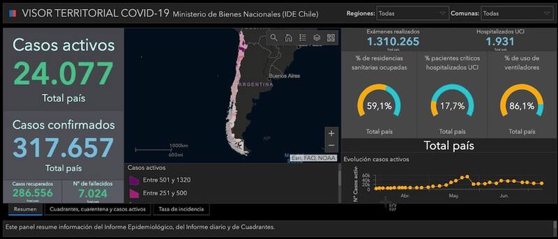 El mapa, disponible en el sitio web de Bienes Nacionales para toda la ciudadanía, permite acceder a datos georreferenciados de coronavirus a nivel nacional, regional, comunal y de barrios