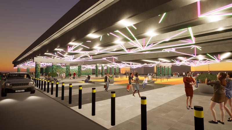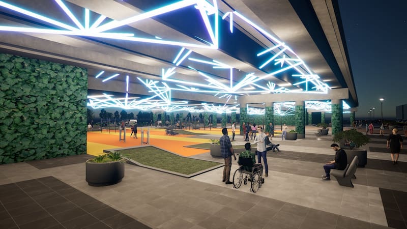 Entre las principales obras que se llevarán a cabo destaca la habilitación de equipamiento deportivo, además de juegos gimnásticos y un skate park. Además, habrá zonas de comercio y servicios, junto a una explanada para el desarrollo de actividades. Adicionalmente, se contemplan paradas de autos para tomar y dejar pasajeros del Metro.