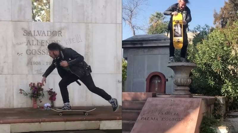 Los hechos quedaron registrados en videos difundidos por redes sociales y en ellos se puede ver a un par de personas vestidas de negro patinando en skate sobre algunas tumbas y mausoleos. En los registros también se puede ver a un hombre saliendo de una tumba y luego exhibir un cráneo en su mano.