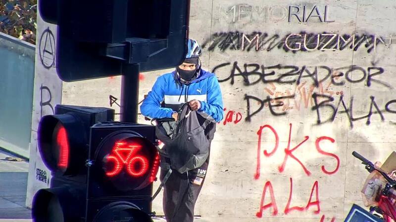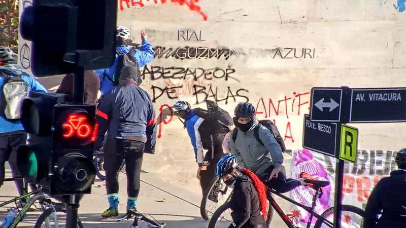 “Un grupo muy menor de personas, alrededor de 20 o 30, se descuelgan de la cicletada y ocasionan daños a la infraestructura de algunas sedes de partidos políticos y al monumento de Jaime Guzmán ”, señaló el General Raúl Agurto.