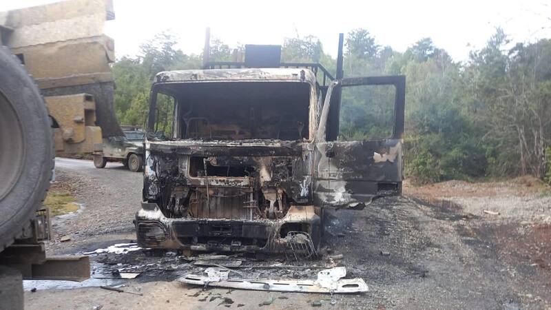 Tras ello los individuos procedieron a incendiar cuatro camiones, ocho maquinarias de labores forestales, un contenedor y un generador de electricidad.