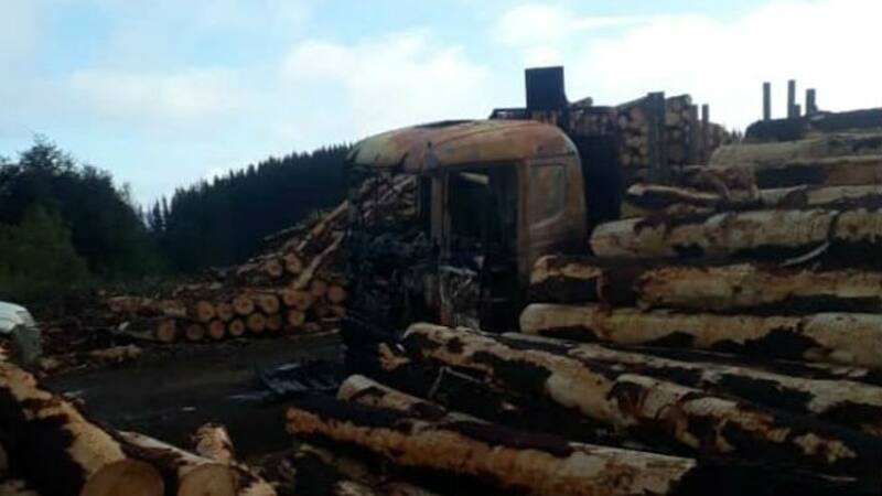 Vehículos de trabajo forestal, entre ellos un skidder, además de un contenedor fueron destruidos en un ataque incendiario que afectó al fundo El León, de la empresa Mininco, en la comuna de Lumaco, región de La Araucanía.