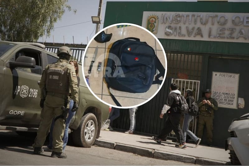 Y es que el arma cortopunzante no era lo único que portaba Meneses. Al colegio ingresó con dos mochilas que por su contenido sorprendió a quienes lo vieron: otras tres armas blancas, una luma, gas pimienta, diluyente, y una pistola de agua con un líquido que está siendo periciado, entre otros. La Fiscalía indicó que, además, en una de las mochilas se encontró un artefacto configurado como una bomba simulada, sin material explosivo y que contenía “un mensaje de burla”. Debido a esto se solicitó la concurrencia del Grupo de Operaciones Policiales Especiales (GOPE) de Carabineros al colegio.