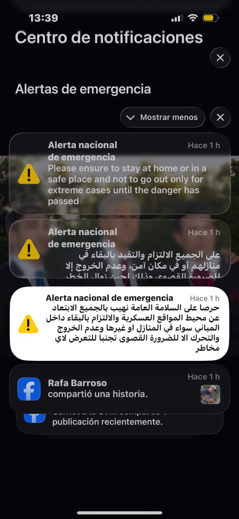 Las primeras noches fueron las más difíciles. El silencio de la madrugada se interrumpía cada cierto tiempo con explosiones en el cielo y con alertas de emergencia —en árabe— que llegaban a los celulares.