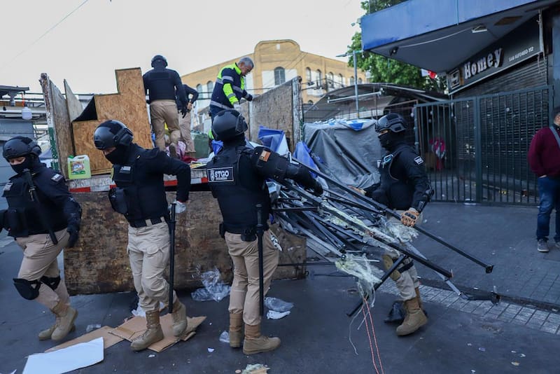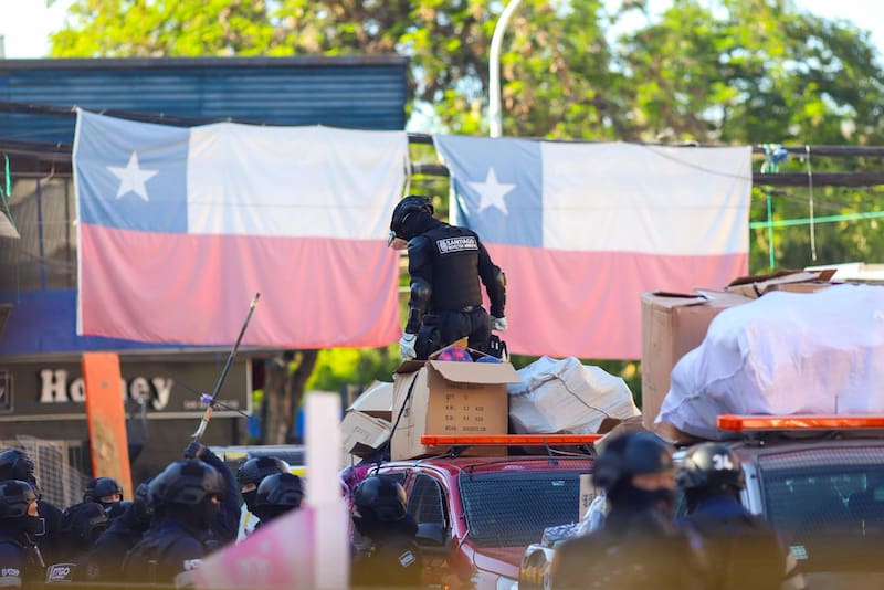El delegado presidencial metropolitano, Gonzalo Durán, sostuvo que la intervención avanza según lo planificado y con menor resistencia que en operativos anteriores. “Estamos eliminando toda estructura ilegal, incluidos toldos y kioscos irregulares, y actuando contra las economías ilícitas detrás del comercio ilegal, como el contrabando y la falsificación”, afirmó.
