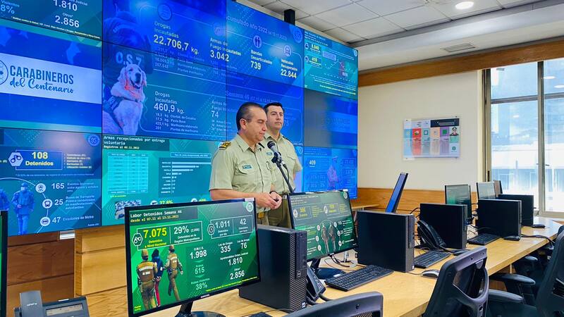 Según las cifras, Carabineros sacó de circulación 1.011 delincuentes diarios, es decir 42 detenidos por hora. Misma semana en la que la institución ha detenido a 1.998 sujetos por diversos Delitos de Mayor Connotación Social (DMCS), de los cuales 335 han sido por infracción a la Ley de Drogas y 76 por infracción a la Ley de Armas.