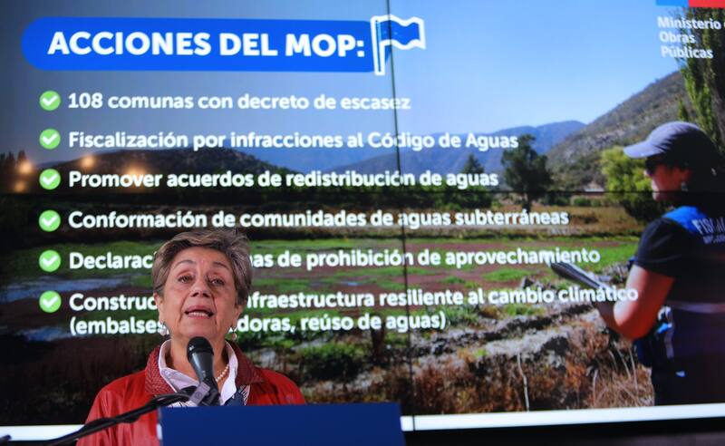 Actualmente, 108 comunas de las regiones de Atacama, Coquimbo, Metropolitana, Valparaíso, O’Higgins, Maule, Ñuble, Biobío y Magallanes, se encuentran con decreto de escasez. Desde el MOP, aseguraron que esto significa que, “a nivel del territorio se debe ejecutar una gestión eficiente y coordinada entre los usuarios y con el apoyo de las autoridades”.