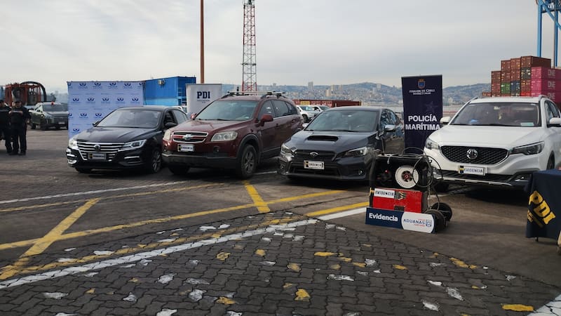 En dependencias de Aduanas, en el terminal portuario de Valparaíso, autoridades entregaron detalles de una investigación que concluyó con la captura de una banda internacional que envió a Europa 60 kilos de clorhidrato cocaína oculta en la estructura de maquinarias agrícolas.