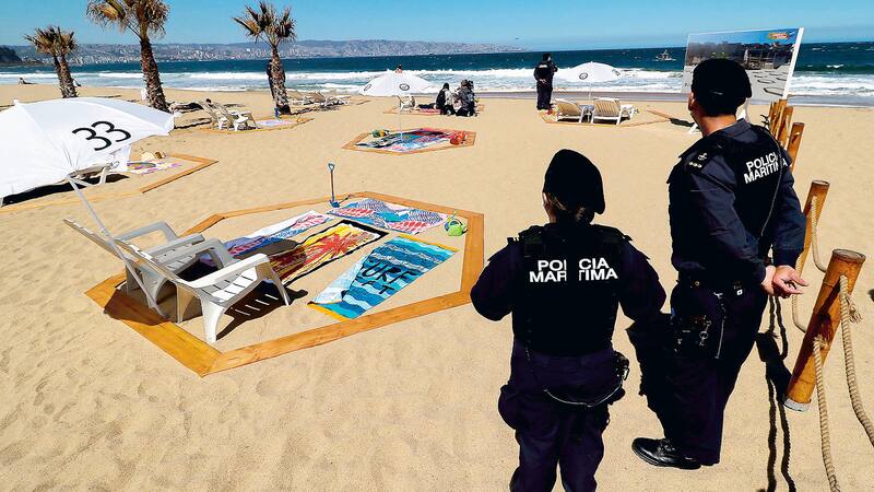 Los ministerios de Salud y de Bienes Nacionales lanzaron ayer, justamente en Reñaca, la guía de recomendaciones llamada “Playa Segura”. Entre ellas destaca el distanciamiento -de un metro entre personas de un mismo grupo y de cinco metros respecto de otras personas- y la regulación del uso de mascarilla (obligatoria en todo momento, salvo cuando las personas estén tumbadas tomando sol).