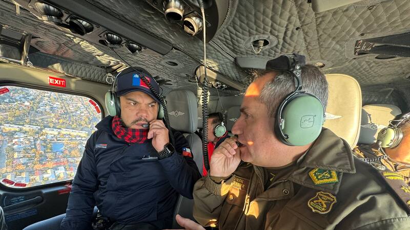 El subsecretario de Prevención del Delito, Eduardo Vergara, y el director de Control de Drogas e Investigación Criminal de Carabineros, general Jaime Velasco, encabezaron un operativo aéreo policial la mañana de este jueves, en el marco del trabajo preventivo para reducir el robo violento de vehículos.